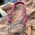 Die Fettlederleine ist geflochten und mit farblich abgesetztem Paracord Typ 3 in mehrfarbigem Lila veredelt und hat einen O-Ring aus Edelstahl, falls Du eine weitere Leine anbringen möchtest.
